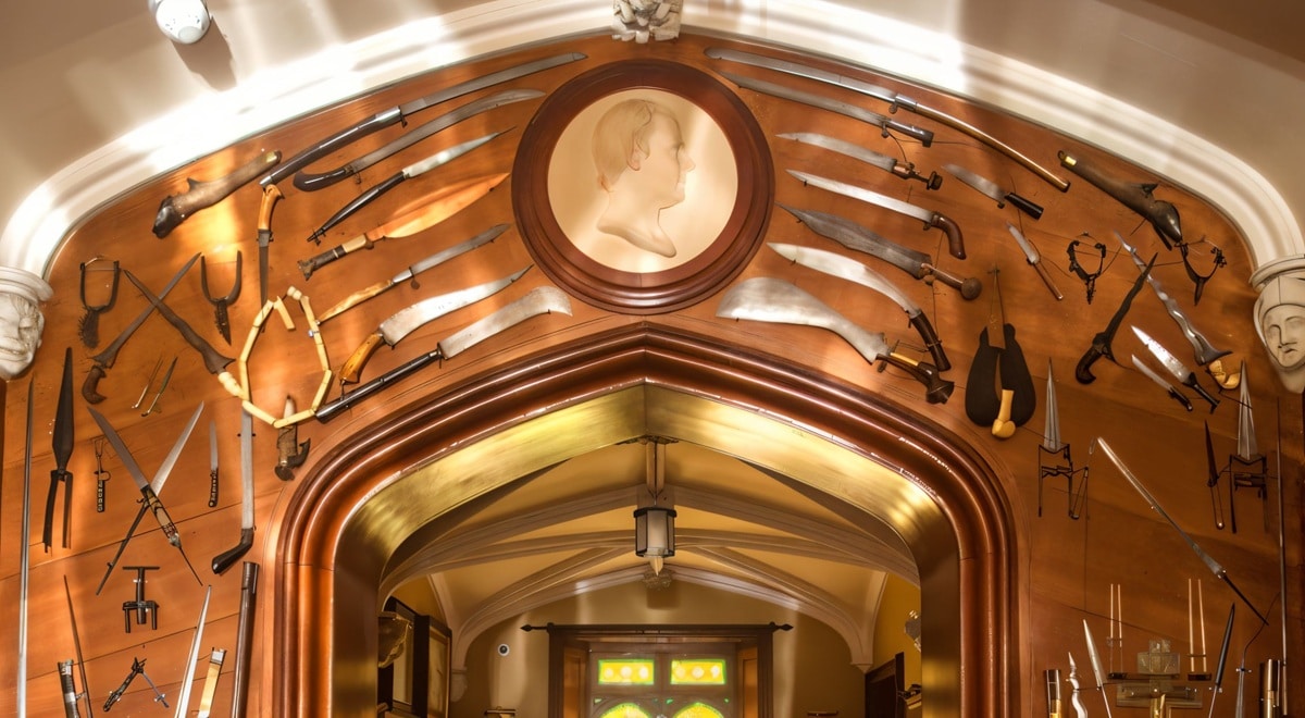 L’armurerie est l’une des pièces qui marque le plus les visiteurs, car elle matérialise le goût de Scott pour les “reliques” et la mise en récit. Le site officiel explique que Scott attirait l’attention sur certaines pièces phares : l’épée de Montrose, le pistolet de Claverhouse, ainsi que les armes associées à Rob Roy (fusil, épée, dague, sporran). Ici, la collection fonctionne comme une galerie de héros, presque une scène.