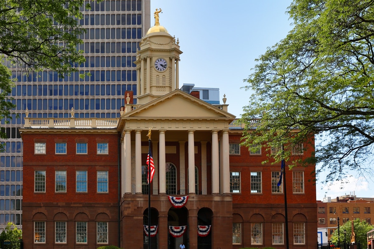 Construit à la fin du XVIIIe siècle, ce bâtiment marque un moment fort dans l’histoire du style fédéral. Dessiné par Charles Bulfinch, il combine rigueur classique et présence civique. Le dôme, ajouté plus tard, attire l’œil. Mais l’essentiel est ailleurs. Composition nette, proportions tenues, et ensemble donnant une image stable du pouvoir. Un bâtiment public qui cherche à rassurer autant qu’à représenter.