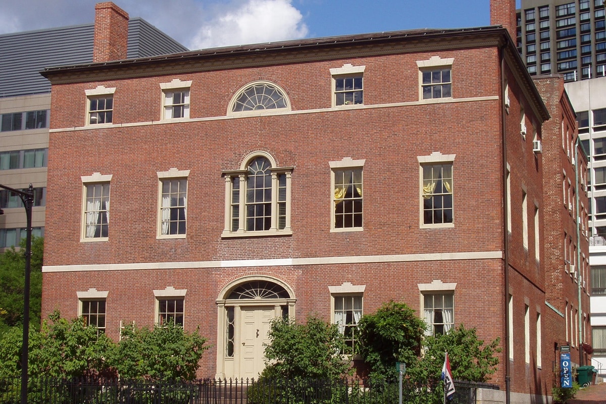 Cette maison, construite à la fin du XVIIIe siècle, sort légèrement du cadre par sa forme. Et pourtant, elle reste profondément fédérale dans son esprit. Les lignes sont contrôlées, les détails sont fins, et l’ensemble garde une vraie cohérence. Elle est aussi connue pour un épisode politique fort : le traité de Gand y a été signé après la guerre de 1812. Cela donne au bâtiment une dimension historique directe.