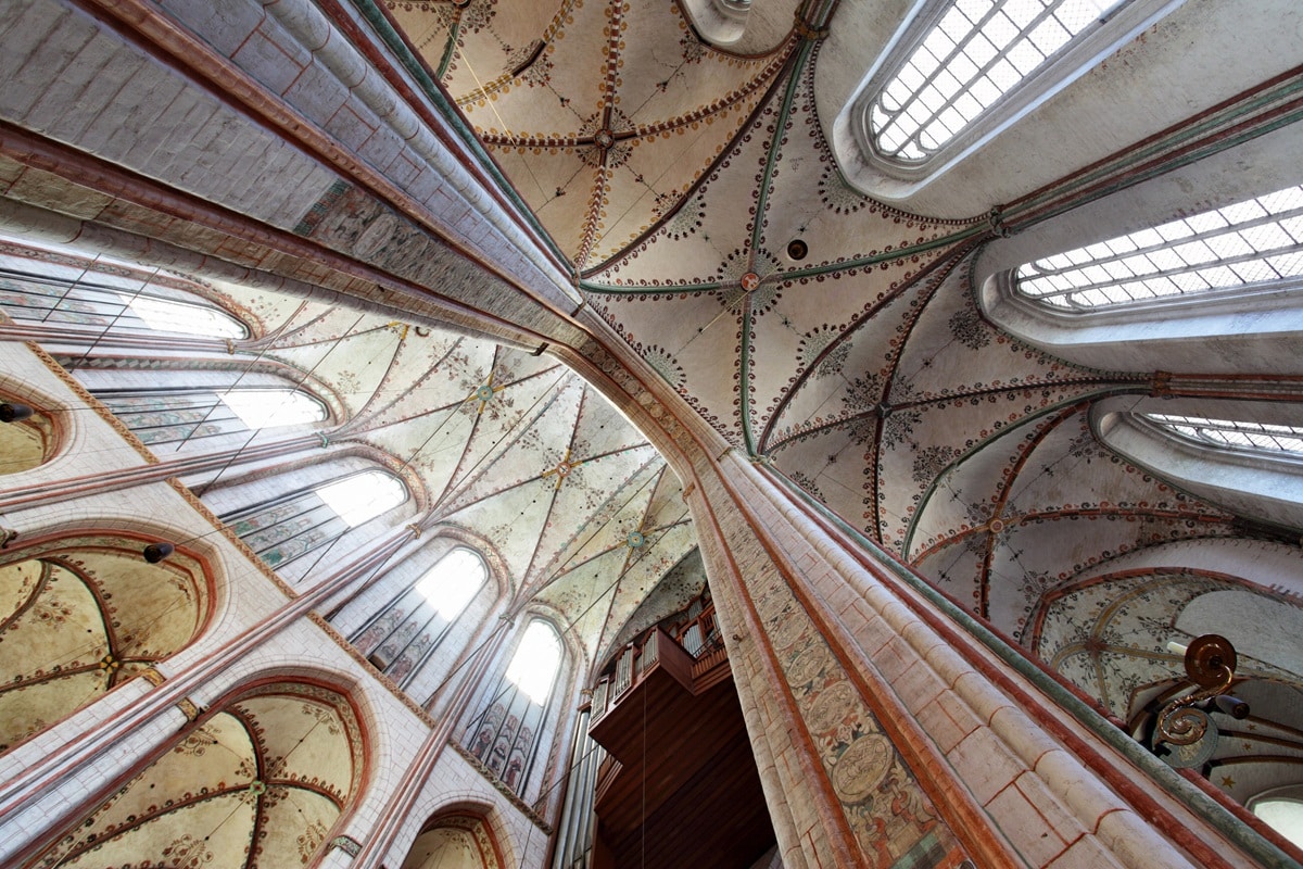 La vieille ville de Lübeck est considérée comme « l’un des exemples les plus importants de l’architecture gothique de brique ». Le plan urbain médiéval, le réseau viaire, les lots, la morphologie des immeubles sont encore préservés. L’église St. Mary’s Church qui, construite entre 1265 et 1352, possède l’un des plus hauts voûts en brique au monde et a servi de modèle à près de 70 autres églises dans la région baltique.