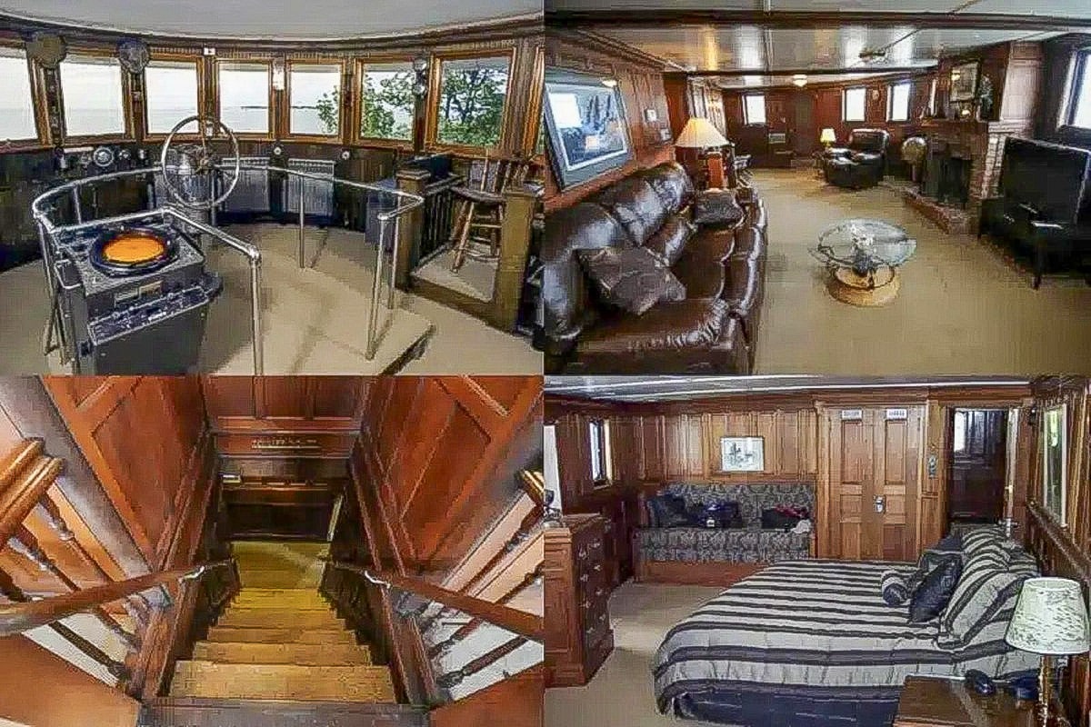 Déclassé en décembre 1981, le navire est ensuite vendu à Frank J. Sullivan, qui imagine une reconversion radicale. Cinq ans plus tard, la partie avant du bateau est déposée et transformée en une vaste maison d’été. La structure conserve l’ossature et les volumes d’origine du navire, mais les espaces intérieurs sont réaménagés pour créer une habitation de quatre niveaux, totalisant environ 650 m². Entre architecture résidentielle et patrimoine naval, cette transformation assume son héritage maritime, tout en démontrant qu’un ancien bateau de fret peut devenir un lieu de vie confortable, spectaculaire et durable.
