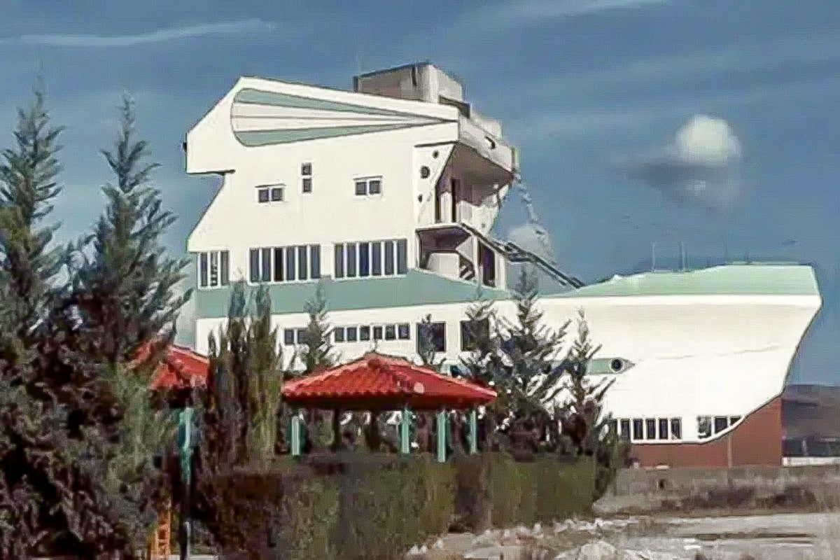 Contrairement à une embarcation véritable, cette « maison-bateau » n’a jamais été conçue pour naviguer : il s’agit d’un bâtiment terrestre construit pour évoquer un navire géant, sans port à proximité ni fonction nautique réelle. Son origine remonte à une initiative individuelle ou locale d’architecture insolite : le projet aurait été élaboré en tant qu’attraction touristique ou expression d’un style hors-norme, bien qu’il ne soit pas fini ou pleinement exploité. Cette construction est un exemple d’architecture inventive, illustrant comment des formes inspirées du monde marin peuvent être transposées en bâtiment.