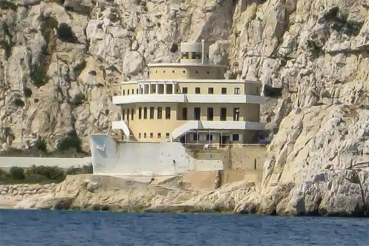 Sur la roche du littoral marseillais, cette villa à l’allure de paquebot fait partie des constructions les plus intrigantes de la côte méditerranéenne. Implantée à flanc de falaise, face à la mer, elle adopte une composition horizontale : volumes étagés, terrasses continues, garde-corps filants et façade arrondie évoquent la silhouette d’un navire prêt à prendre le large. Vue depuis la mer, la maison donne l’illusion d’une proue blanche surgissant de la roche calcaire, un effet renforcé par l’alignement régulier des ouvertures, assimilables à des hublots, et par la superposition des niveaux qui rappellent des ponts.