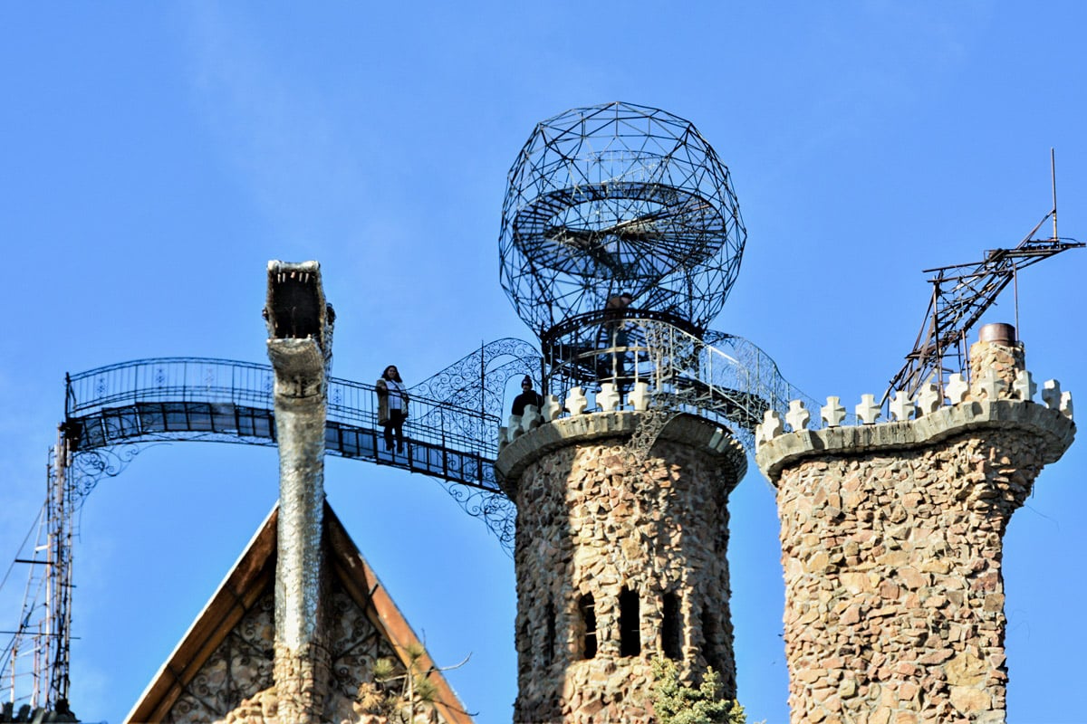 La visite de Bishop Castle se fait en accès libre, sans billetterie ni parcours balisé. Le site officiel précise que l’entrée repose sur le principe du “visitez à vos risques”, ce qui influence directement l’expérience architecturale. Escaliers étroits, garde-corps soudés à la main, passerelles exposées au vent : rien n’est normalisé selon les standards d’un équipement culturel classique. Le corps devient l’outil de mesure, et chaque déplacement rappelle que l’édifice n’a pas été conçu pour une fréquentation de masse.