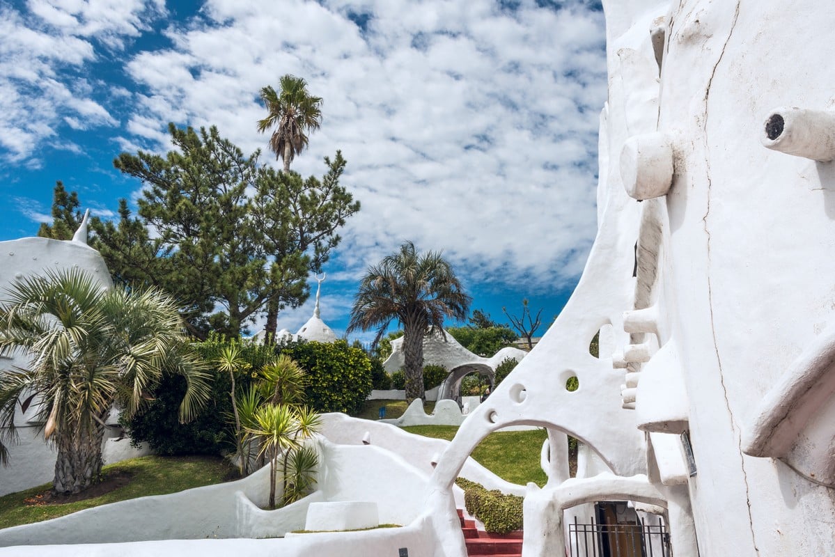 L’artiste revendiquait par ailleurs une référence enracinée dans la culture uruguayenne : le nid du hornero (Furnarius rufus), oiseau national présent dans toute la pampa du Río de la Plata. Cet oiseau construit des abris en forme de four en terre crue mêlée de fibres végétales, avec des ouvertures orientées en fonction du vent dominant. Vilaró voyait dans ce geste naturel un modèle d’architecture organique et poétique. Casapueblo reprend cette logique instinctive : absence de lignes droites, volumes modelés comme de l’argile, assemblages progressifs, forme protectrice tournée vers l’extérieur. L’édifice ne copie pas un style, il adopte un langage architectural sensible, façonné par la main plus que par la règle.