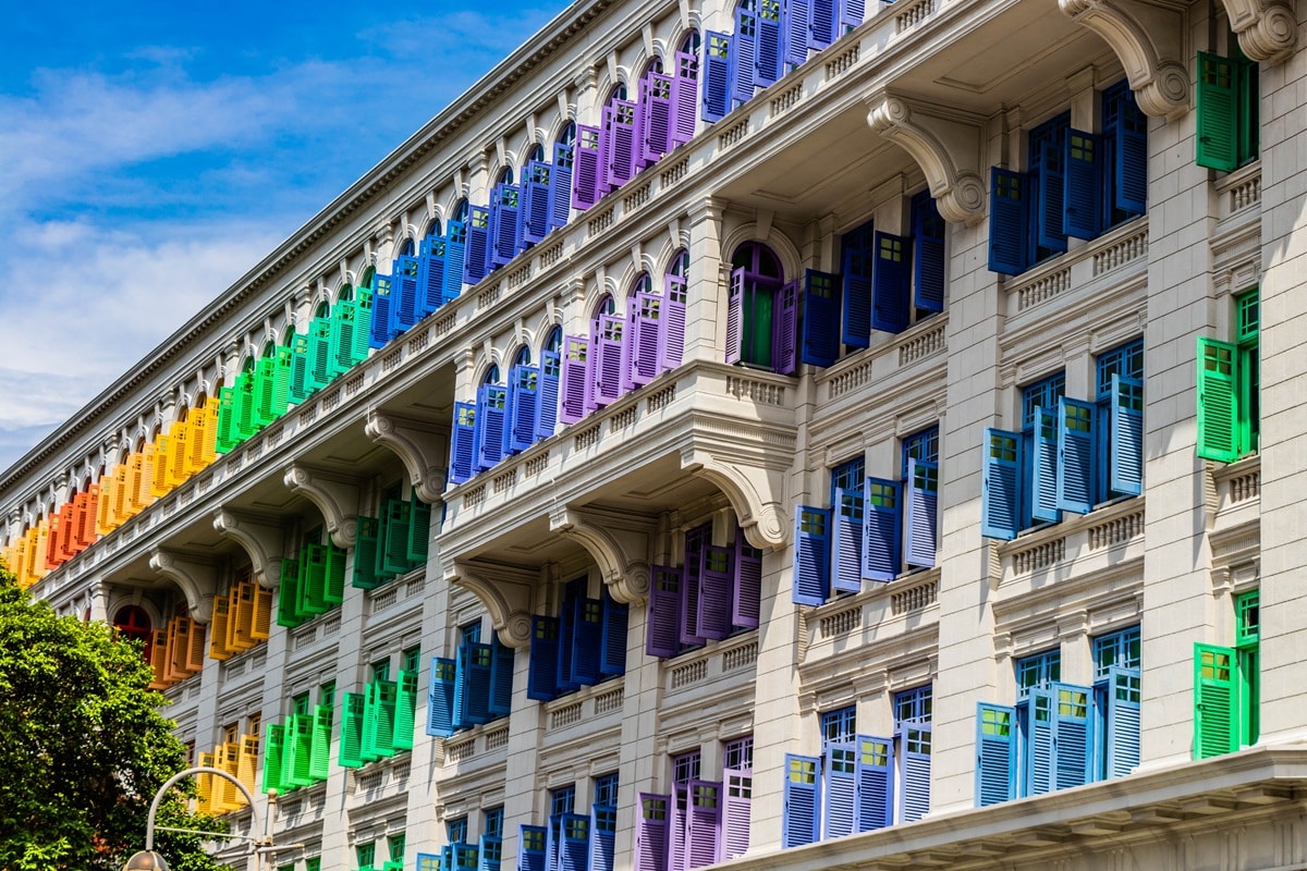 Autrefois, l’Old Hill Street Police Station était surnommé le « gratte-ciel de la police », en raison de son allure imposante et de son rôle central dans l’administration coloniale, puis nationale. Aujourd’hui, ce bâtiment historique se distingue avant tout par son esthétique singulière : sa façade compte pas moins de 927 fenêtres, toutes peintes dans les couleurs de l’arc-en-ciel. Ce choix chromatique transforme l’édifice en repère visuel et apporte une note joyeuse au cœur du paysage urbain de Singapour.