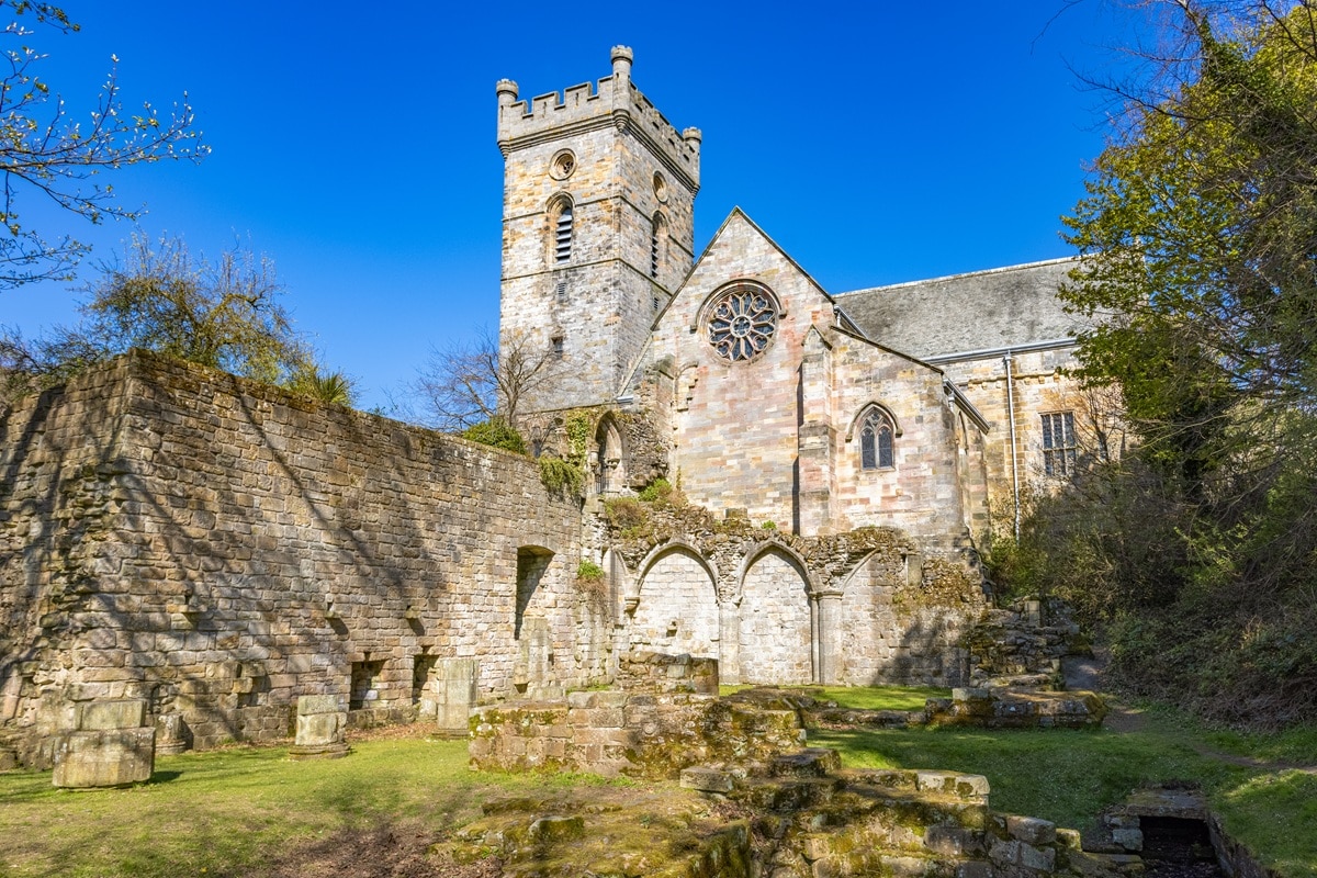 Dominant le village depuis la colline, les vestiges de Culross Abbey rappellent l’importance religieuse du site bien avant son apogée économique. Fondée au XIIIᵉ siècle, l’abbaye fut un centre spirituel majeur jusqu’à la Réforme écossaise. Ses ruines, intégrées au paysage urbain, participent à la lecture historique du lieu, où le pouvoir religieux précède et accompagne le développement marchand.