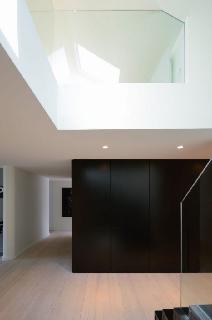 Ce projet de rénovation de grenier à Strasbourg est dans un ancien bâtiment construit en 1901. f + f architectes l’a transformé en duplex moderne pour une jeune famille. Le niveau d’entrée avec une double hauteur de plafond de l’appartement de 240 m2 se compose de chambres, salles de bains, bureau et salle familiale. Le grenier est un loft ouvert avec cuisine, salle à manger et salon avec une grande terrasse. Le plancher de bois de pin a été gardé et re-traité dans une finition blanche pâle de style scandinave.