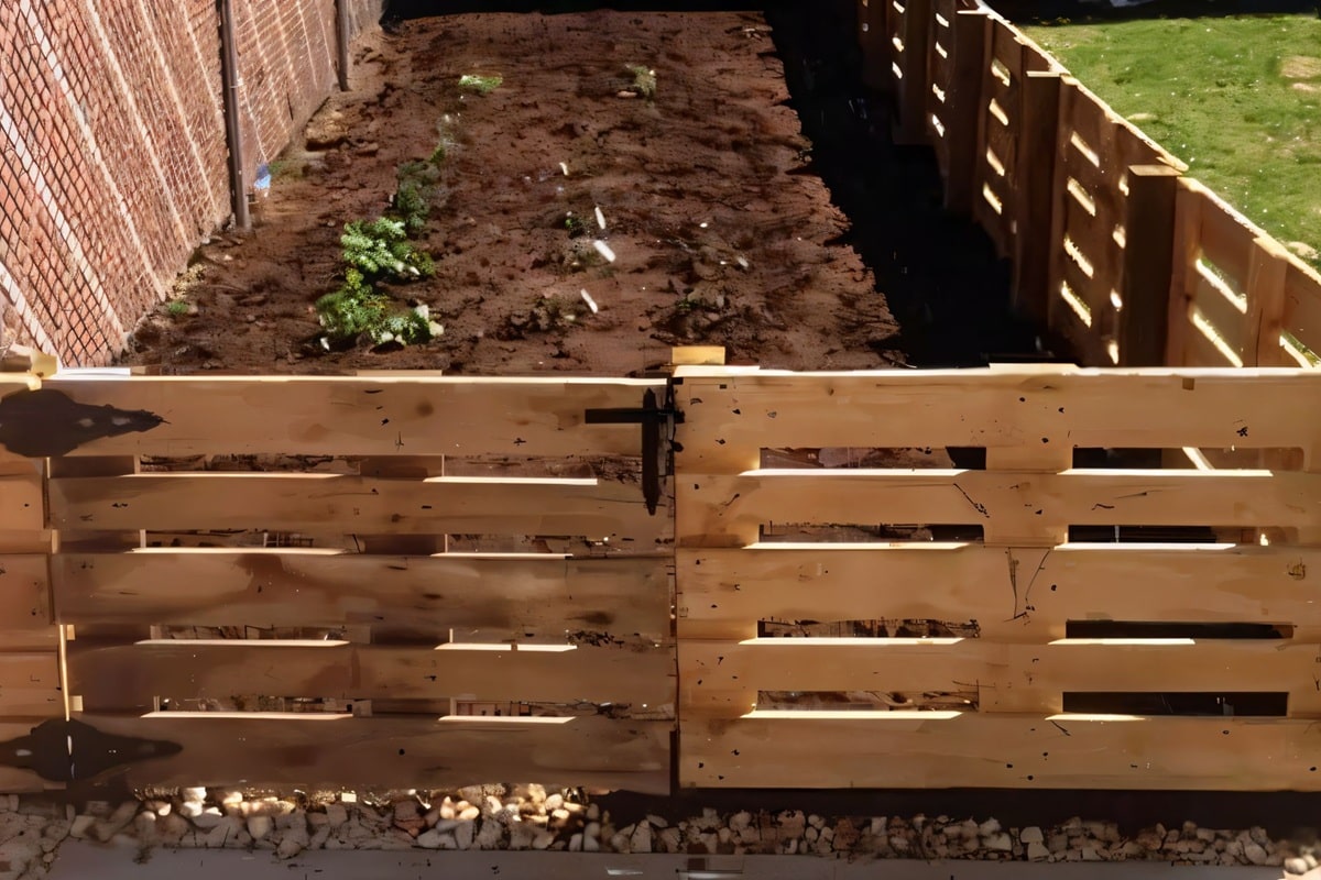 La construction est simple et progressive. Les palettes sont fixées sur des poteaux en bois ou en métal préalablement scellés, ou parfois entre elles sur une ossature légère. L’alignement se fait vite et les ajustements sont faciles à corriger au fur et à mesure. Ce type de clôture permet d’avancer par modules, sans outillage spécifique ni savoir-faire particulier. Une fois la structure en place, un léger ponçage et une protection suffisent pour prolonger la durée de vie du bois. C’est une solution pratique, économique et idéale pour un projet rapide, avec un résultat fonctionnel dès les premières heures de pose.