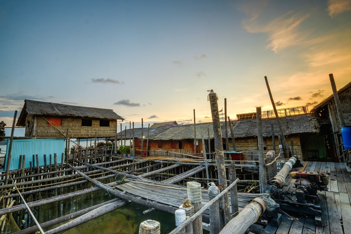 La vie sur un kelong est rythmée par la mer et par les cycles de pêche. Les grandes plateformes sont aménagées de façon basique mais ultra fonctionnelle : une cuisine ouverte équipée de réchauds à gaz, quelques cabines en bois pour dormir, une salle commune et des zones de travail pour démêler, réparer ou sécher les filets. L’électricité provient de petits générateurs ou de panneaux solaires, tandis que l’eau douce est stockée dans des réservoirs qui sont généralement livrés par bateau.
