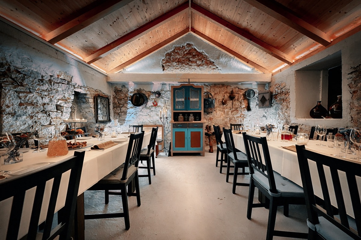 Il y a quelque chose d’émouvant à descendre dans une konoba : vous avez l’impression que la maison respire un peu plus lentement à cet étage, comme si elle gardait sa mémoire dans ces murs épais.