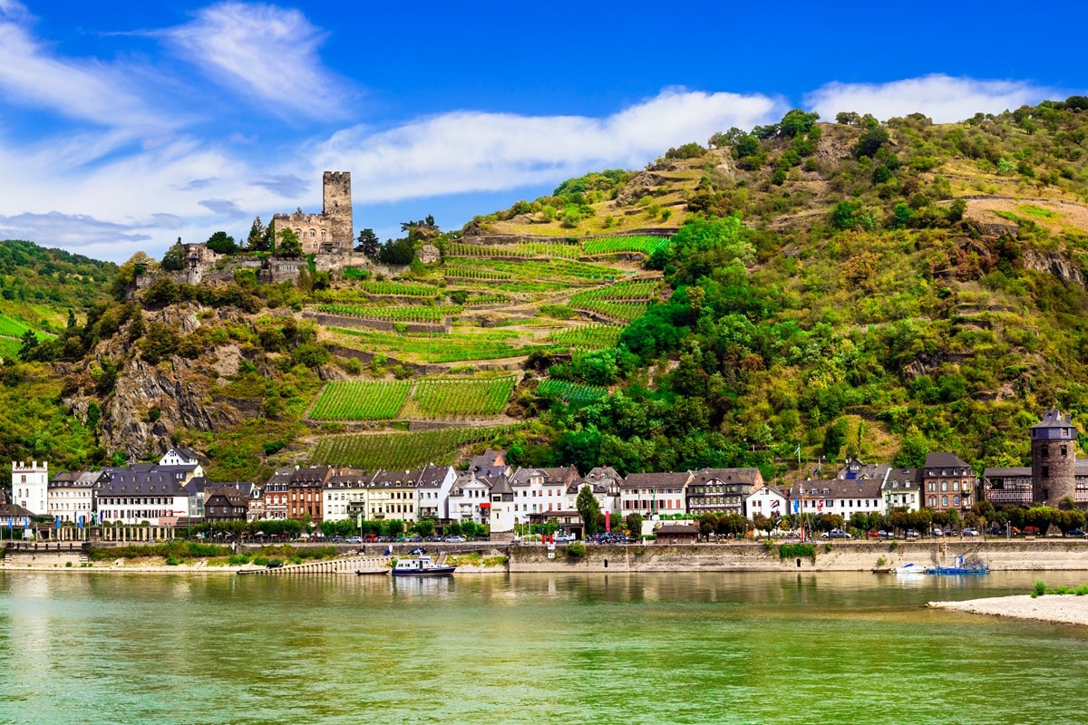 Rüdesheim marque souvent le début de la partie la plus emblématique du Rhin. La ville s’étire entre le fleuve et les vignobles du Rheingau. En arrivant, vous comprenez vite le rôle du vin dans le paysage et dans la vie locale. Le centre historique est animé, structuré autour de ruelles étroites et de maisons anciennes, avec une concentration plus forte de visiteurs que dans d’autres villages plus discrets.
