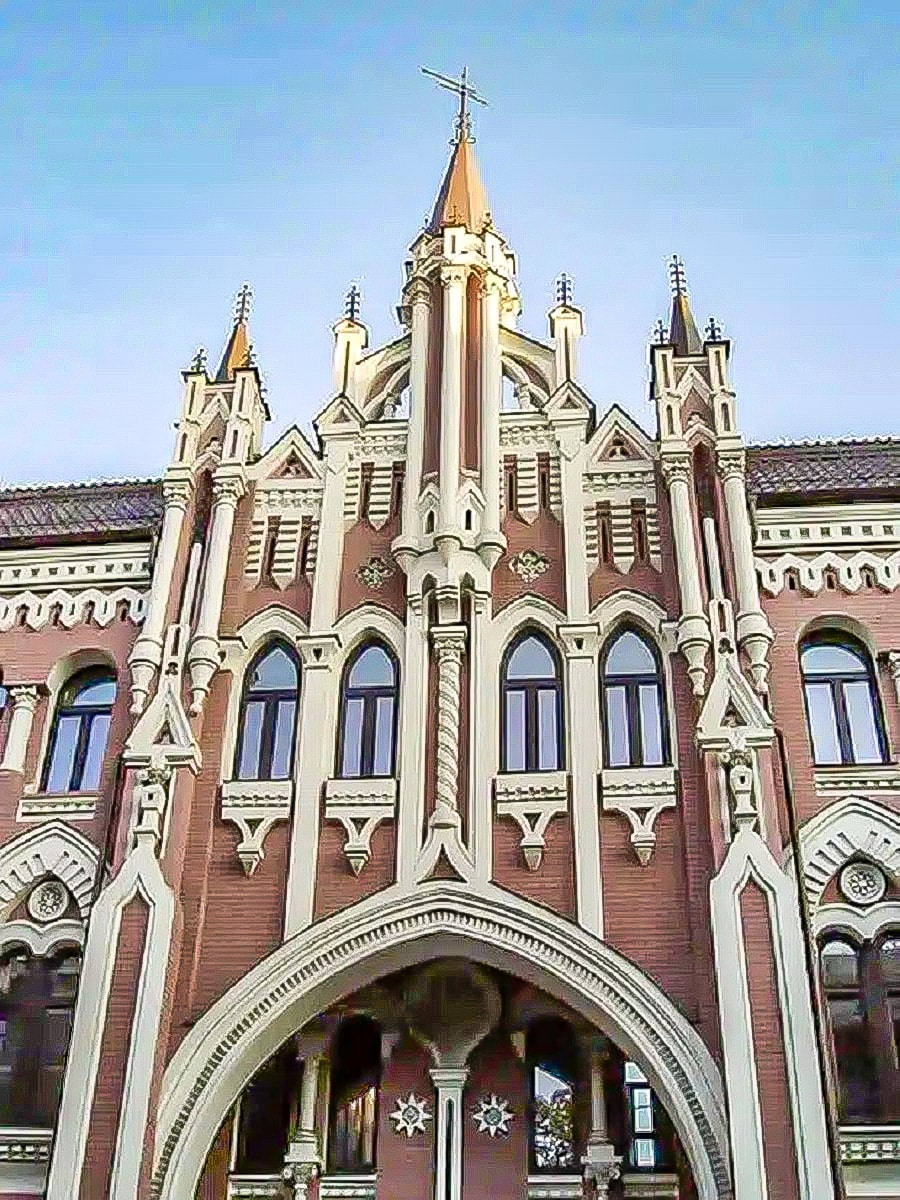 Cette bâtisse est une maison de luxe historique connue sous le nom de maison du baron Hildenbrand, dans l’une des rues prestigieuses de Kiev en Ukraine. Dans le passé, elle était utilisée comme immeuble d’appartements. Il a été construit en 1901 par ordre du baron Vladimir Iskul-Hildenbrand Avgustovich. Le projet a été conçu par l’architecte Mykola Vyschnewskyj, le blason estonien sur la façade révèle la nationalité du constructeur. La maison de style gothique est décorée par de nombreuses tours.