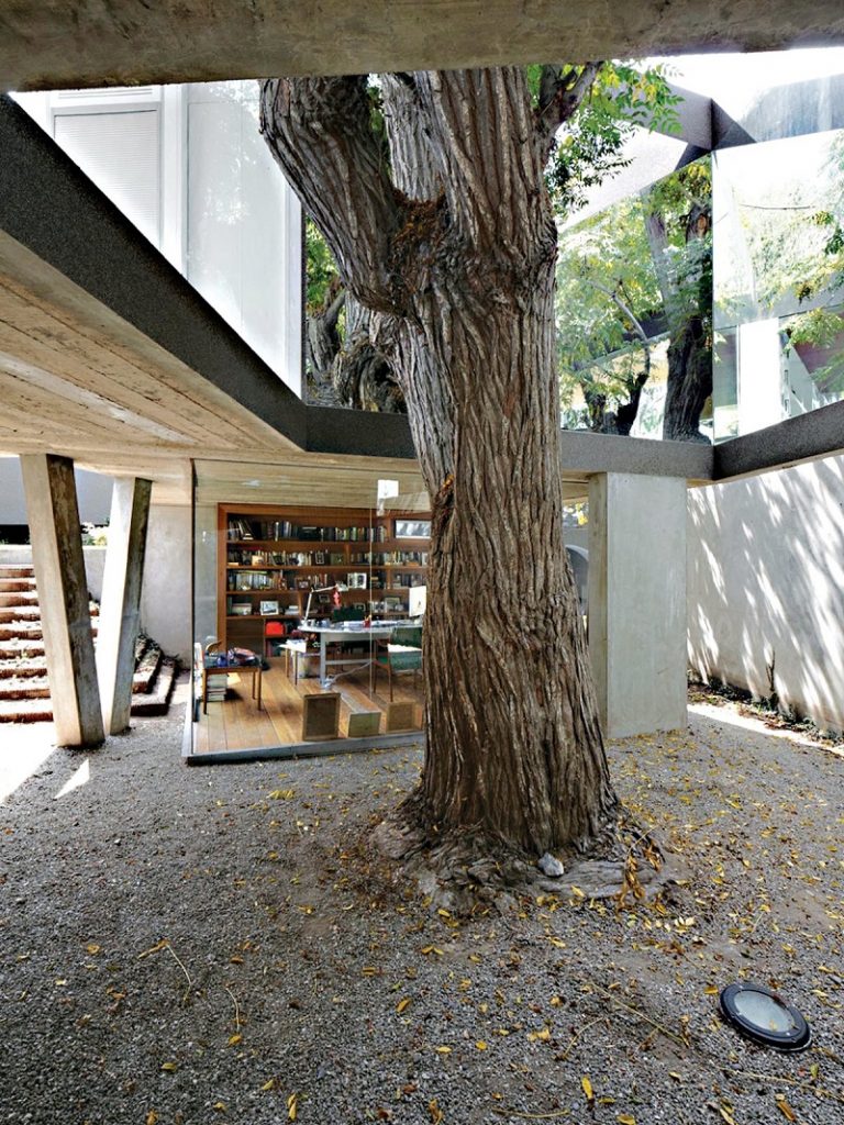 Lorsque le couple a décidé de construire sa nouvelle demeure dans cette grande oasis verte, le mari s’est dit que la question ne se posait pas et que les arbres devaient absolument rester.
