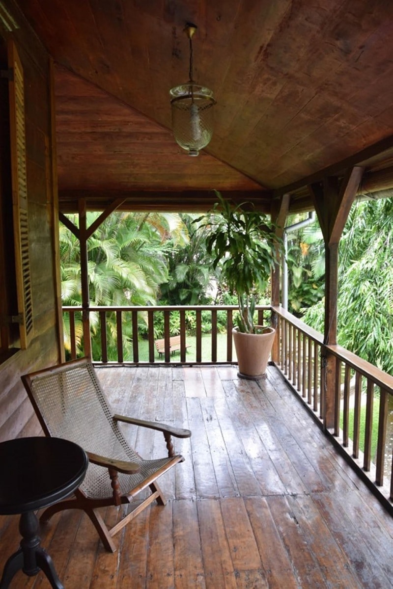 - Les larges galeries : de vastes vérandas ceinturent le bâtiment. Elles permettent de se protéger du soleil et des pluies tropicales tout en favorisant la circulation de l’air.