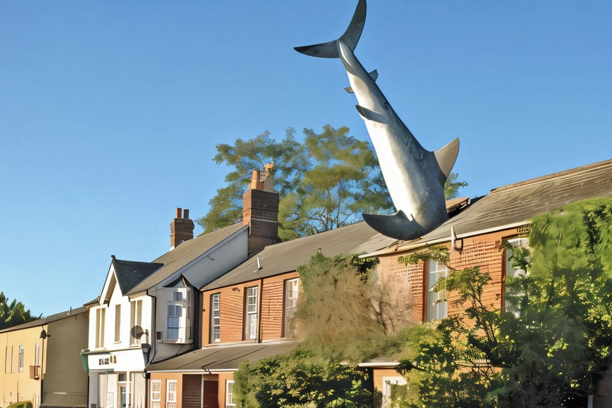 La célèbre « Headington Shark House », plus connue sous le nom de maison requin d’Oxford, est une demeure qui intrigue et amuse autant les habitants que les visiteurs. Située dans la banlieue est d’Oxford, au 2 New High Street dans le quartier de Headington, elle est surmontée d’un gigantesque requin en fibre de verre semblant s’écraser dans le toit. L’animal, de 7,60 mètres de long pour environ 200 kilos, a été conçu en 1986 par l’artiste John Buckley, un ami du propriétaire de la maison, Bill Heine.