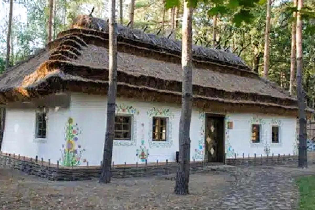 Discrète par ses volumes mais saisissante par ses décors, la maison de Podolie montre une autre histoire de la maison traditionnelle rurale ukrainienne. Ici, les murs sont peints, ornés et chargés de symboles transmis d’une génération à l’autre. Façades blanchies à la chaux, intérieurs fleuris, poêles décorés d’oiseaux et de motifs végétaux composent un langage visuel où se mêlent croyances, rites familiaux et rapport intime au foyer. À travers ces maisons peintes, c’est tout un pan de la culture populaire de Podolie qui s’exprime, entre pratiques ancestrales, matériaux locaux et calendrier religieux.