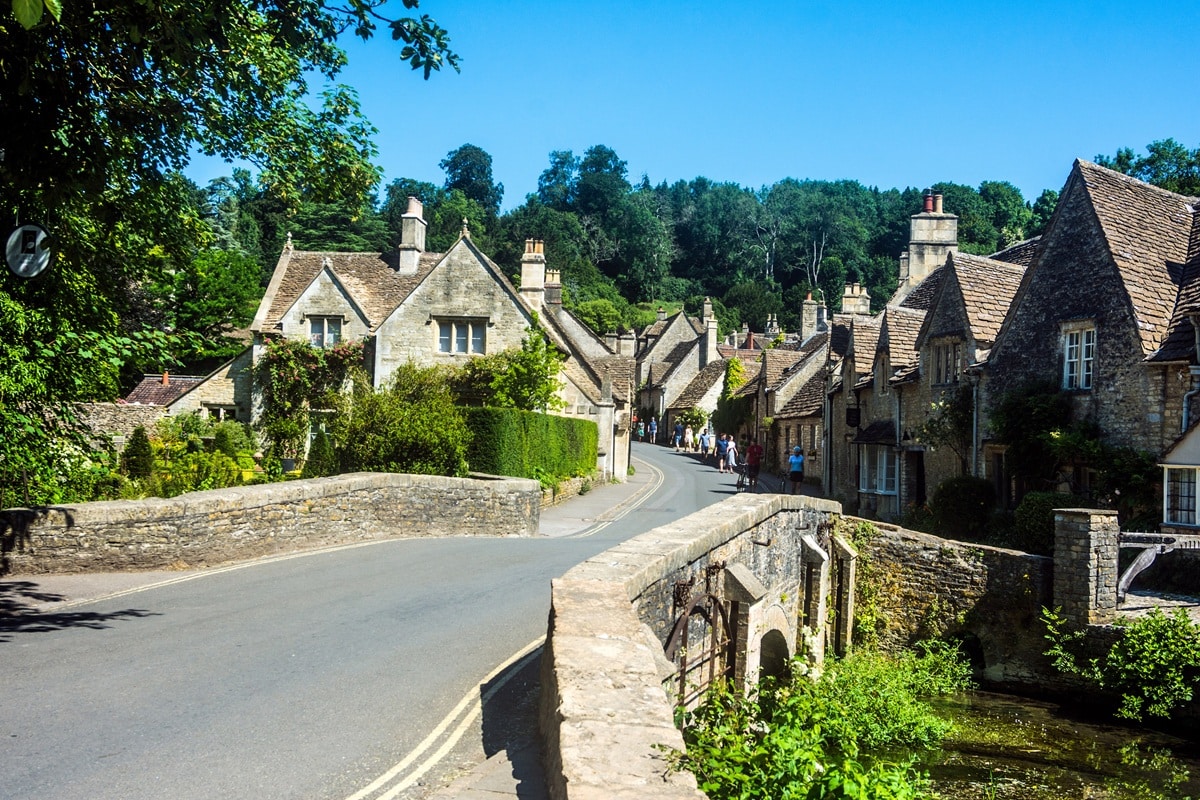 Vous arrivez par une route bordée de haies, la vallée s’ouvre et le village apparaît d’un bloc : pierre dorée, toits pentus, pont sur le ruisseau, place minuscule. Castle Combe tient dans un creux, comme protégé par son relief. Ce cadre résulte d’une histoire précise, d’un matériau local, et de règles tacites.