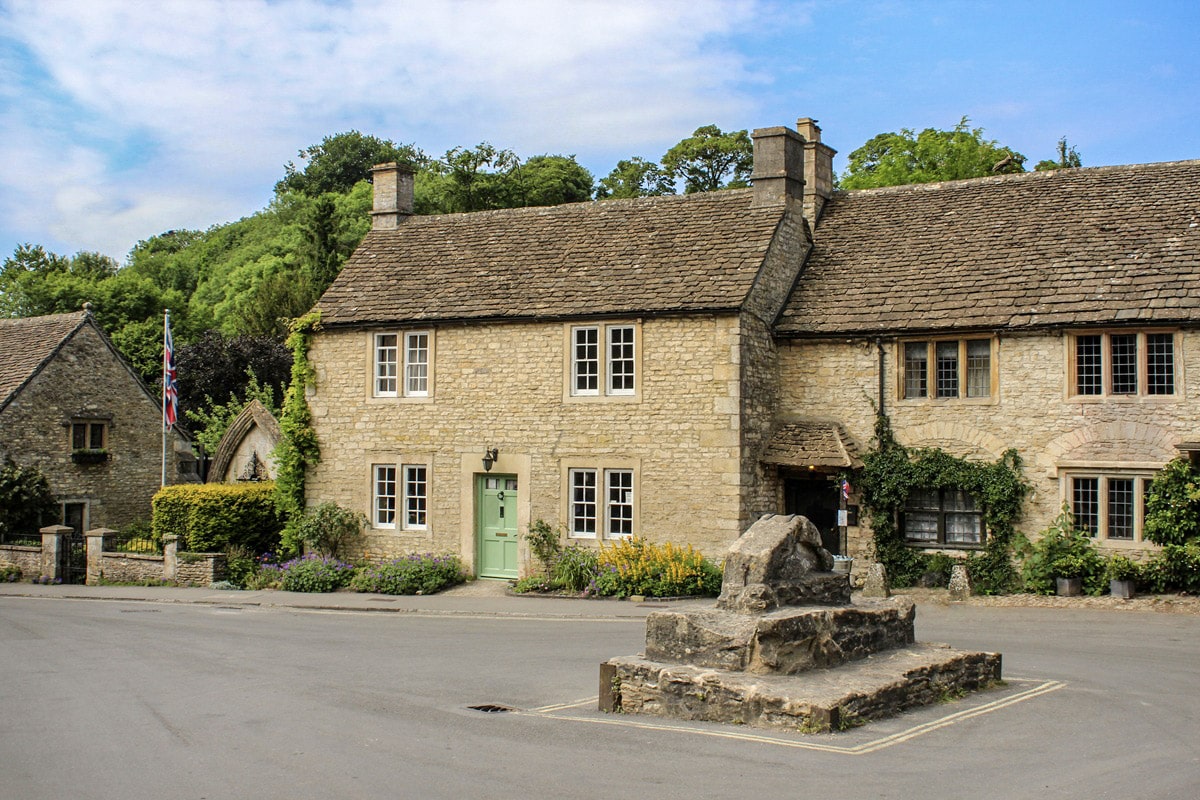 Comme beaucoup de villages des Cotswolds (comme le célèbre Arlington Row dans le village de pierre de Bibury), Castle Combe s’est développé grâce au drap. Dès le XIVᵉ siècle, des moulins à foulon s’installent sur le By Brook, la fibre est travaillée, foulée, lavée, séchée. La prospérité tient au mariage de deux choses simples : un cours d’eau régulier et une pierre calcaire abondante, taillée sur place. Les tisserands construisent leur maison au pas de porte de l’atelier. L’activité perdure plusieurs siècles avant de refluer, quand d’autres centres plus mécanisés prennent l’avantage. Les maisons, elles, restent.