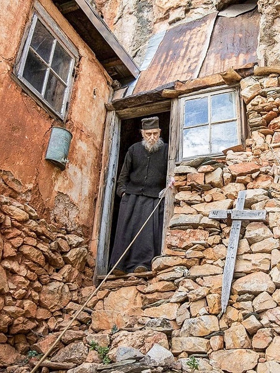 À Karoulia, tout ce qui est matériel est compliqué. L’eau est rare. Elle vient d’une citerne, ou d’un filet d’eau capté plus haut dans la montagne. Il n’y a pas d’électricité. Pas de réseau téléphonique. On cuisine sur un petit feu. Le bois, comme la nourriture, doit être hissé depuis le bas ou porté à dos d’homme. Les moines, parfois âgés, n’en redescendent plus jamais. Ils vivent là, année après année, dans une routine qui ne change guère : lever avant l’aube, prière, méditation, quelques gestes de survie. Il n’y a pas de visite. Parfois, un pèlerin vient déposer des vivres. On échange quelques mots. Puis la vie reprend.