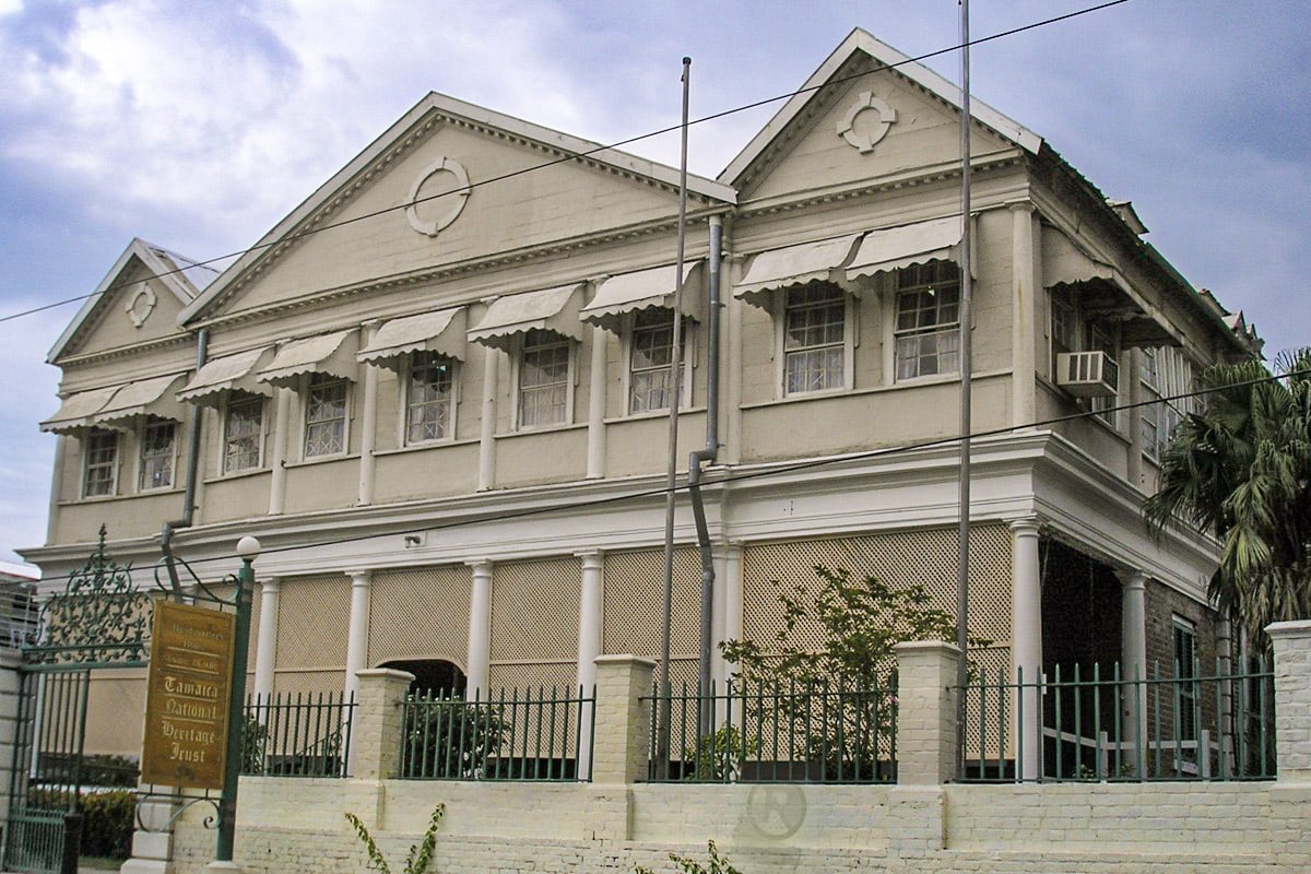 À Kingston, Devon House illustre bien l’adaptation d’une demeure à la ville : galerie généreuse, menuiseries soignées, volumes équilibrés. À Falmouth, l’ensemble urbain offre un cours de rattrapage à ciel ouvert : les maisons conservent encore des arcades, des façades régulières, des toitures d’un seul tenant, sans rupture. À Spanish Town, quelques bâtiments publics rappellent l’alignement géorgien et le soin des proportions. Dans les campagnes, des domaines historiques montrent la version rurale de la maison de style jamaïcain-géorgien : grande galerie, escalier extérieur, dépendances autour d’une cour.
