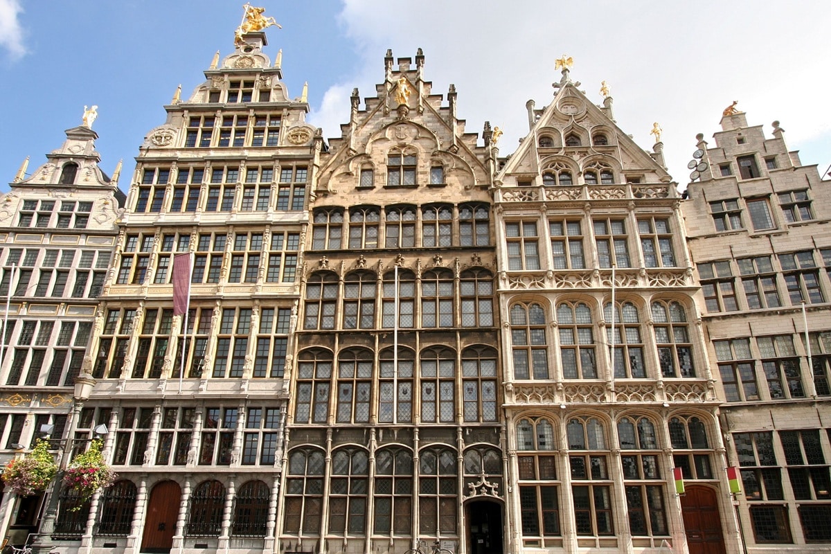 Un décor né de la prospérité… et des incendies. Anvers s’enrichit au XVIᵉ siècle grâce au commerce maritime. Puis viennent les troubles et destructions. On reconstruit, on rehausse, on dore les acrotères. Les façades actuelles mêlent Renaissance flamande et baroque, avec des restaurations des XIXᵉ et XXᵉ siècles. Chaque époque y a laissé sa couche, comme un palimpseste de pierre et de lumière.