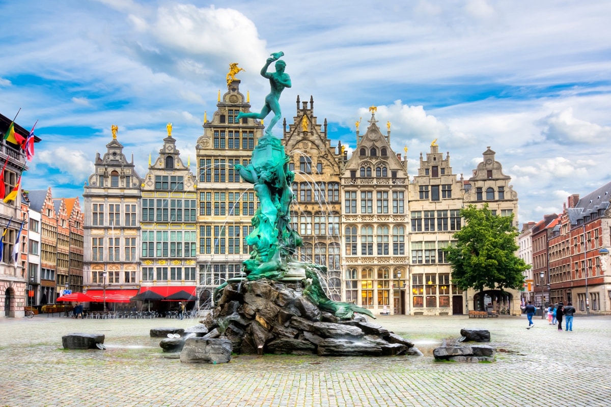 Vous arrivez sur la Grand-Place d’Anvers. Le bronze de Brabo jaillit au-dessus de la fontaine, des façades étroites se serrent comme un décor de théâtre, et des pignons découpés filent vers le ciel.