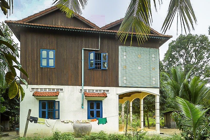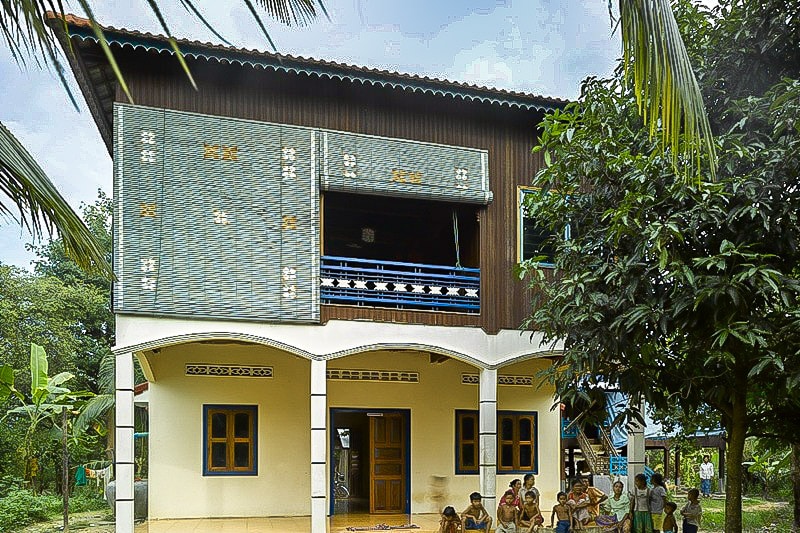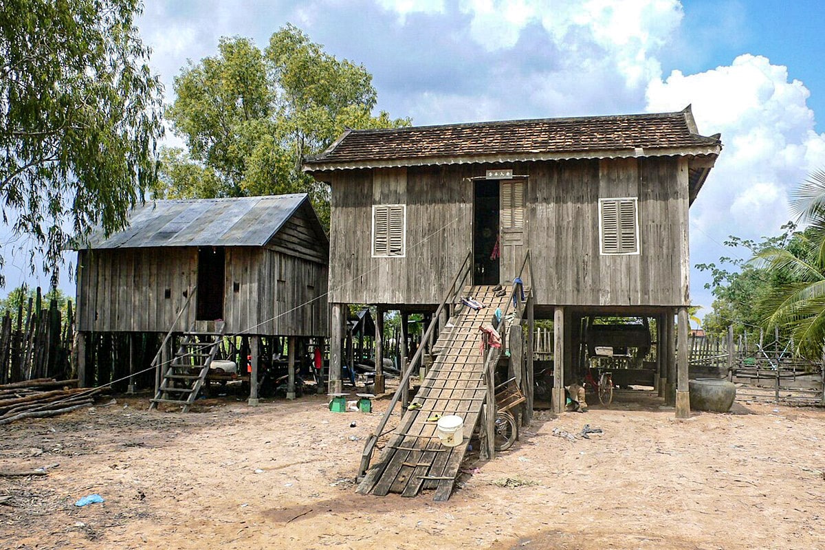 Le rez-de-chaussée des maisons khmères traditionnelles était ouvert : espace-atelier ventilé, abri pour le bétail ou stockage des nasses à poissons. Aujourd’hui, ce niveau est souvent muré en briques, signe de statut social et de recherche de sécurité. Cette transformation reflète trois évolutions sociétales :