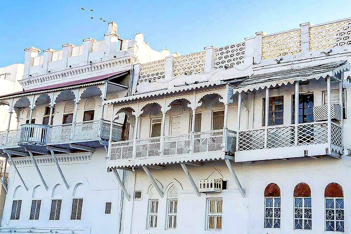 Les maisons de marchands bordant la corniche témoignent de cet âge d’or commercial : elles appartenaient à des familles influentes, notamment les Lawati, les Khoja et quelques familles arabes d’ascendance baloutche et persane. Leur fonction était double : résidence familiale et entrepôt commercial, avec un accès direct au port. Elles incarnaient ce passé marchand maritime.