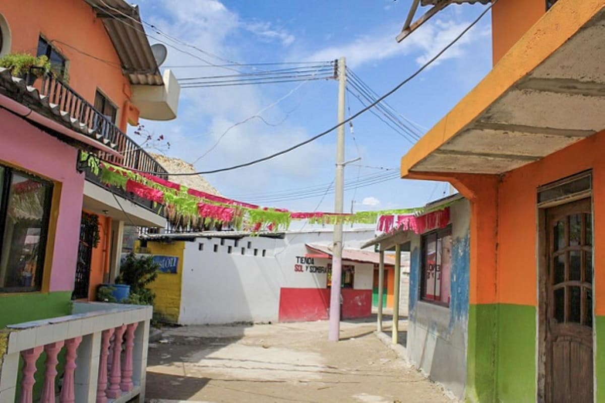 La plupart des maisons sont simples : une pièce principale, une ou deux chambres, un espace pour cuisiner, souvent à l’extérieur. On dort souvent à plusieurs dans une même pièce, faute de place. Les couleurs apportent de la gaieté. Bleu vif, jaune, rose, vert pomme… les façades égayent le paysage.