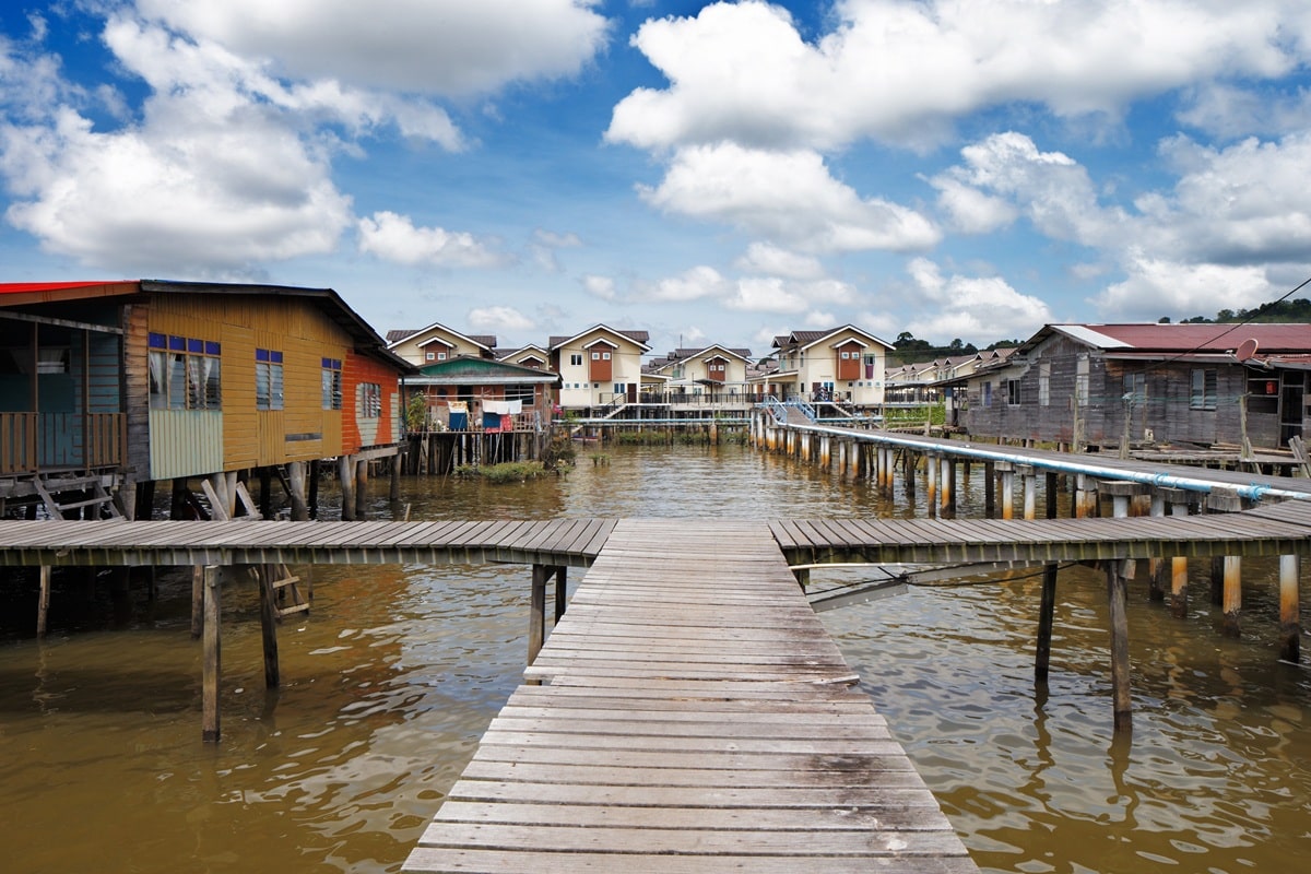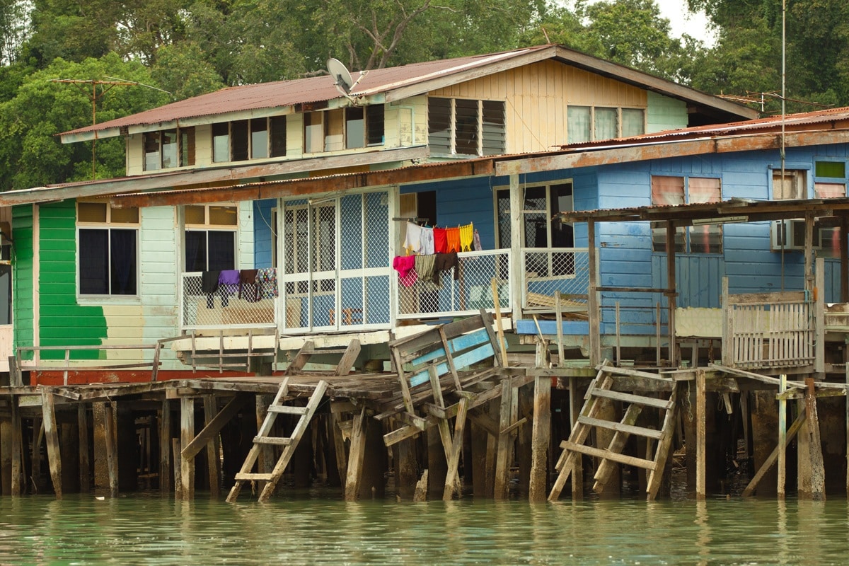 Bandar Seri Begawan, la capitale, s’est développée face à Kampong Ayer, un vaste ensemble de villages sur pilotis au-dessus du fleuve Brunei. Le site aligne des écoles, des mosquées et des milliers d’habitations reliées par des passerelles et des ponts. C’est un cœur historique, longtemps surnommé la « Venise de l’Orient ». En 2016, la population recensée de Kampong Ayer était d’environ 10 250 habitants, pour près de 10 km² d’emprise sur l’eau. La vie quotidienne y dépend encore du transport fluvial.