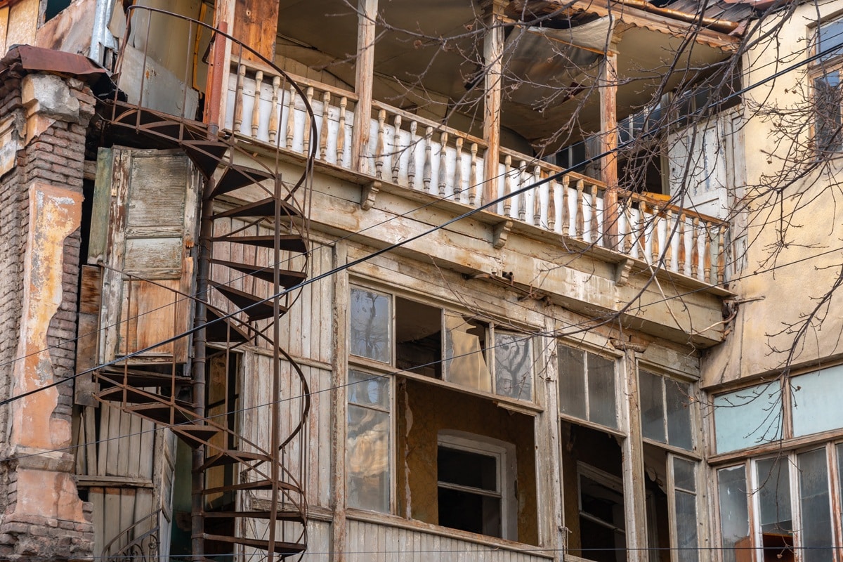 Faute de moyens pour entretenir le parc urbain ancien, de nombreuses maisons historiques sont subdivisées en appartements communautaires (kommunalki) où plusieurs familles partagent la cuisine, les sanitaires et le couloirs. Selon le Georgian National Museum (2018), cette sur-occupation progressive entraîne une dégradation structurelle rapide du bâti ancien, notamment en raison des charges excessives ajoutées sur les plafonds en bois et des transformations non réglementées.