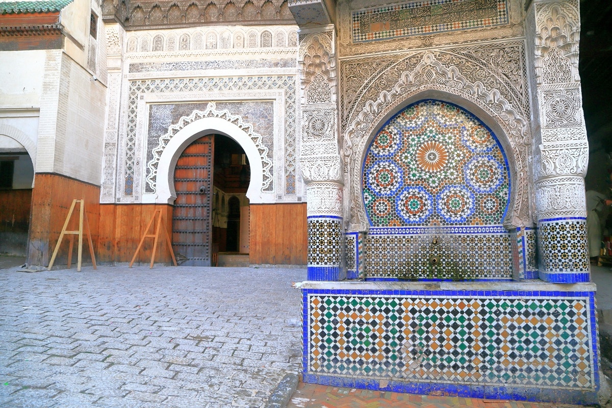 Aujourd’hui, plusieurs fondouks historiques de Fès ont été restaurés ou reconvertis pour accueillir des artisans, des ateliers ou des expositions, tout en préservant leur structure d’origine. C’est le cas du fondouk Nejjarine (en photographie ci-dessous) qui a été transformé en musée. Ils demeurent un témoignage vivant du passé marchand de la médina et offrent aux visiteurs l’occasion de découvrir une facette méconnue du patrimoine urbain marocain, entre traditions commerciales et savoir-faire artisanal.