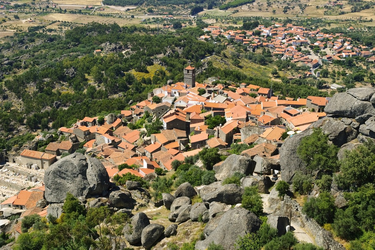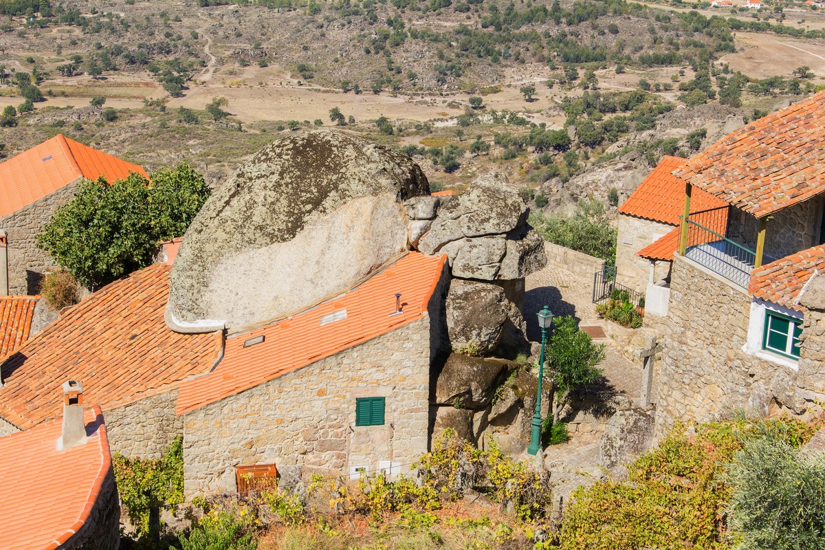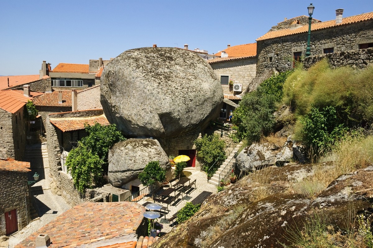 À Monsanto, au centre-est du Portugal, on a parfois l’impression que le relief a gagné la partie. Le village s’accroche à un sommet granitique et les maisons semblent avoir été posées là où il restait un peu de place. Ici, le rocher n’est pas un décor. Il impose les alignements, coupe une ruelle, devient un pignon, sert de mur de soutènement, et, dans quelques cas célèbres, fait carrément office de toiture.