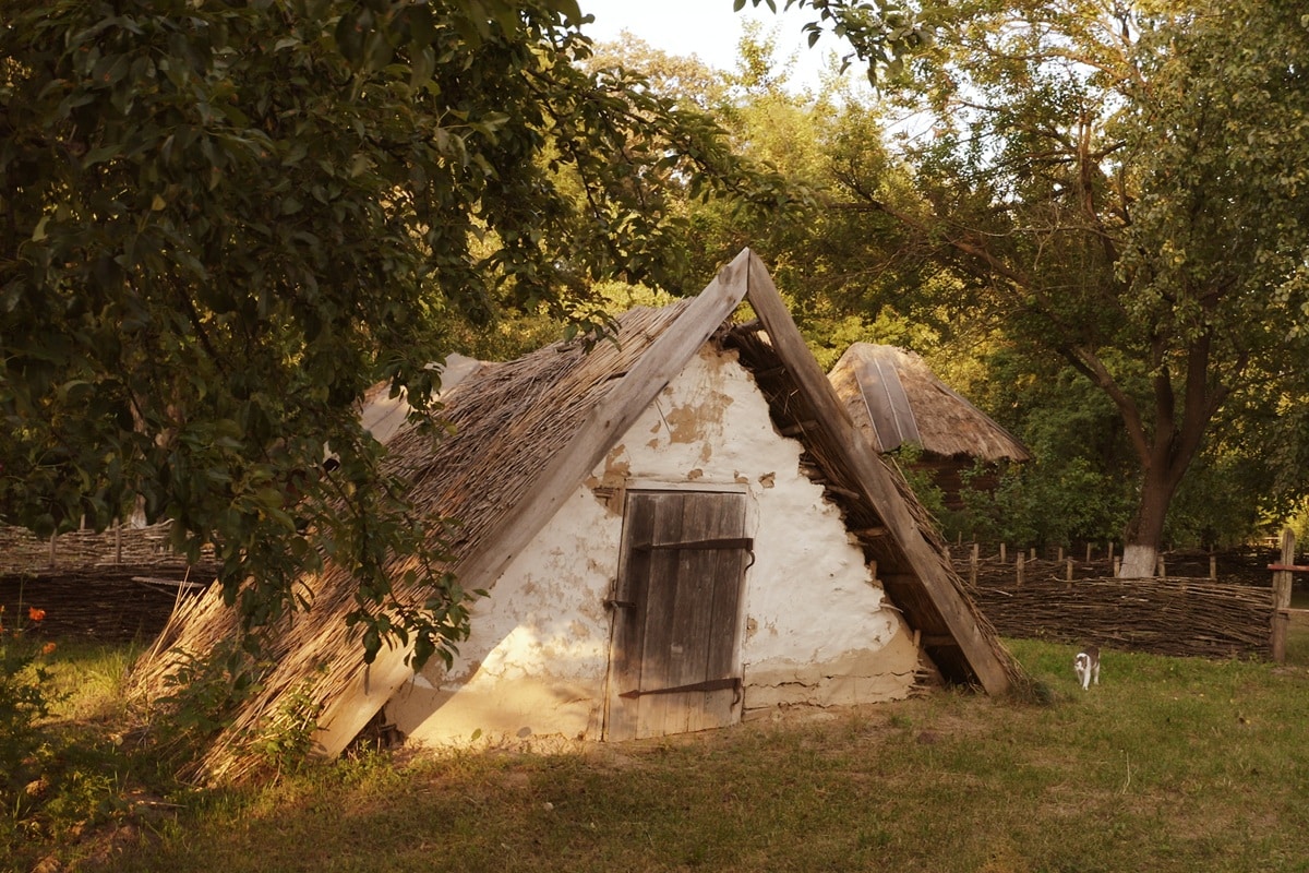- Structure claire et frugale : 4 poteaux majeurs, des pannes, un treillis de perches, une couche végétale et de la terre. La hiérarchie constructive se lit d’un seul regard. Cette clarté facilite l’entretien et la réversibilité. Les reconstitutions NPS rendent cette mécanique visible au public.