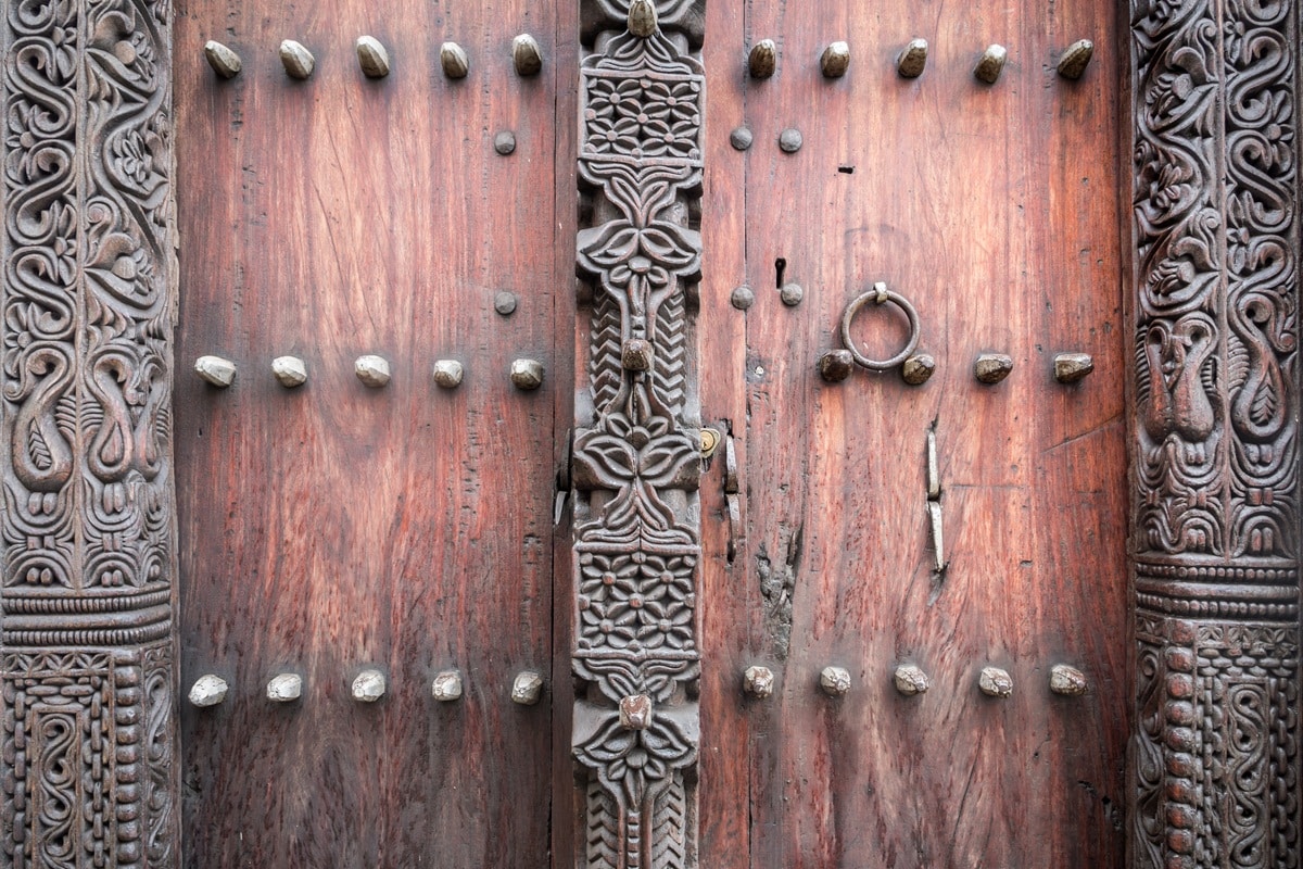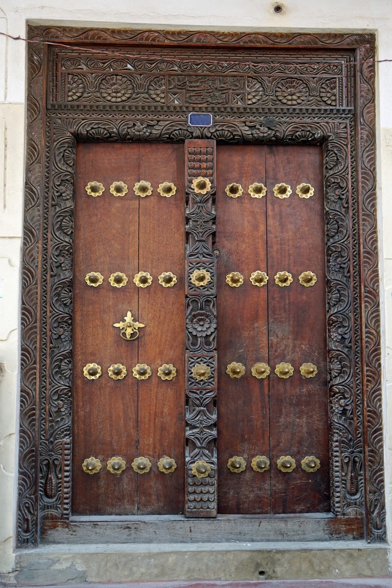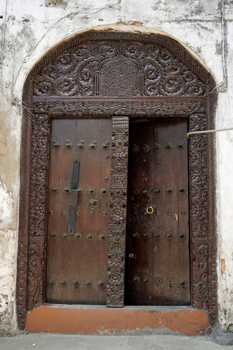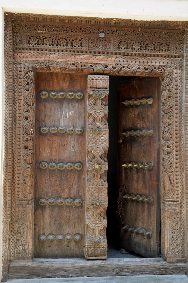 À Zanzibar, la porte a longtemps été l’élément construit en premier. On posait le seuil et le cadre avant d’élever les murs. Le message était clair : « voilà notre maison, voilà qui nous sommes ». La taille, le dessin, la qualité du bois indiquaient la fortune et le rang. Cette coutume s’est diffusée sur toute la côte swahilie, mais c’est à Stone Town que l’on trouve la plus forte concentration de portes anciennes.