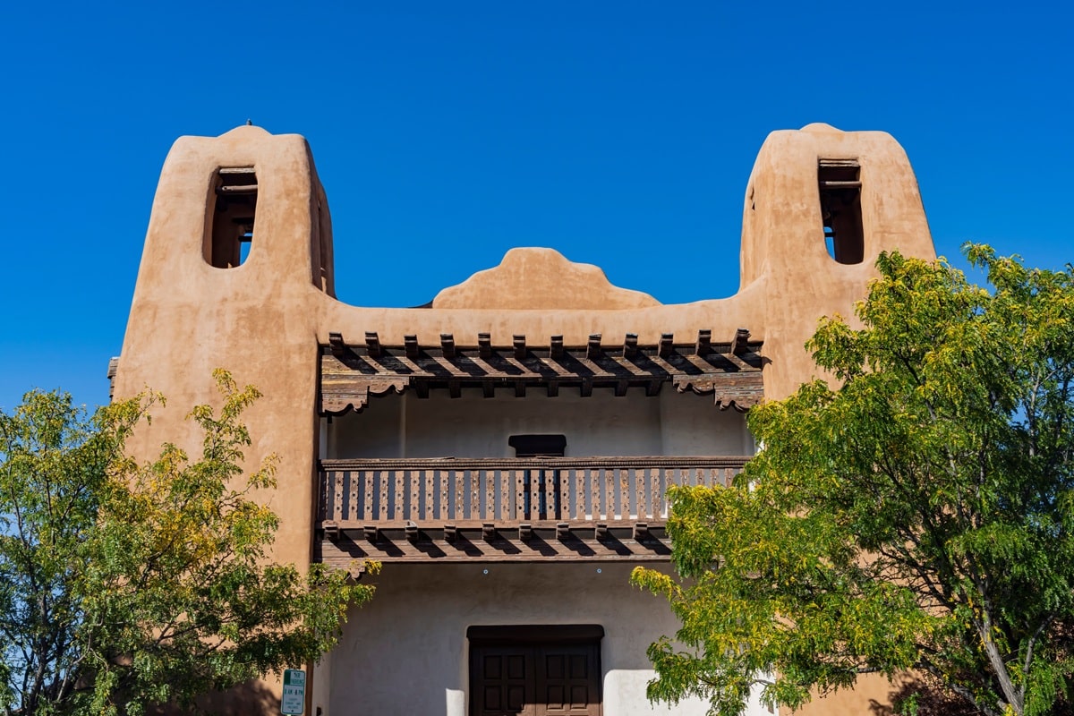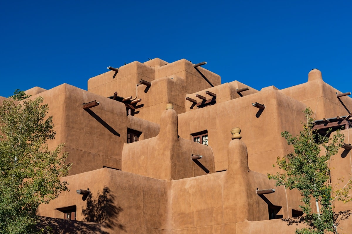 L’autre bastion du style Pueblo Revival est Santa Fe. Au début du XXᵉ siècle, la ville attire artistes, écrivains et architectes intéressés par le désert, la lumière et les cultures autochtones. Beaucoup fuient les villes industrielles de l’Est et cherchent une vie plus « enracinée ». Ils se regroupent autour d’un projet commun : redonner au Nouveau-Mexique une identité architecturale distincte, inspirée des traditions locales.