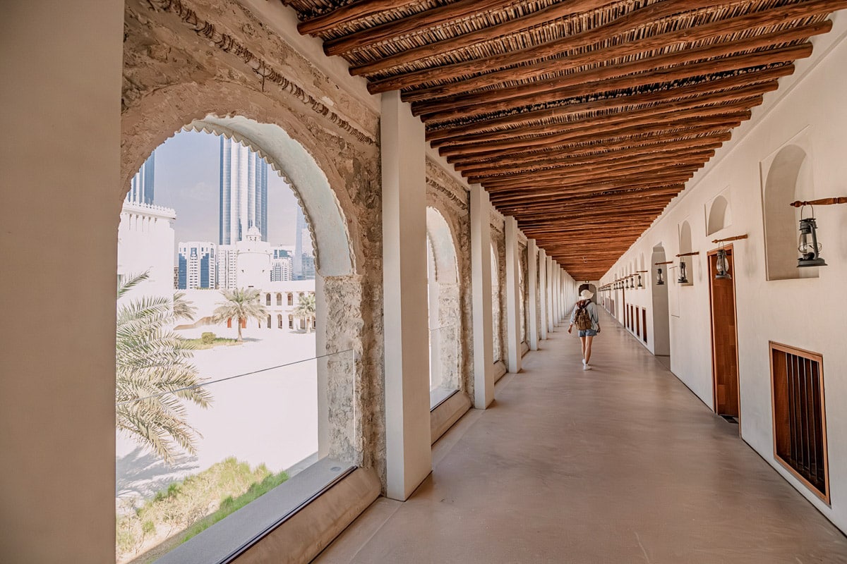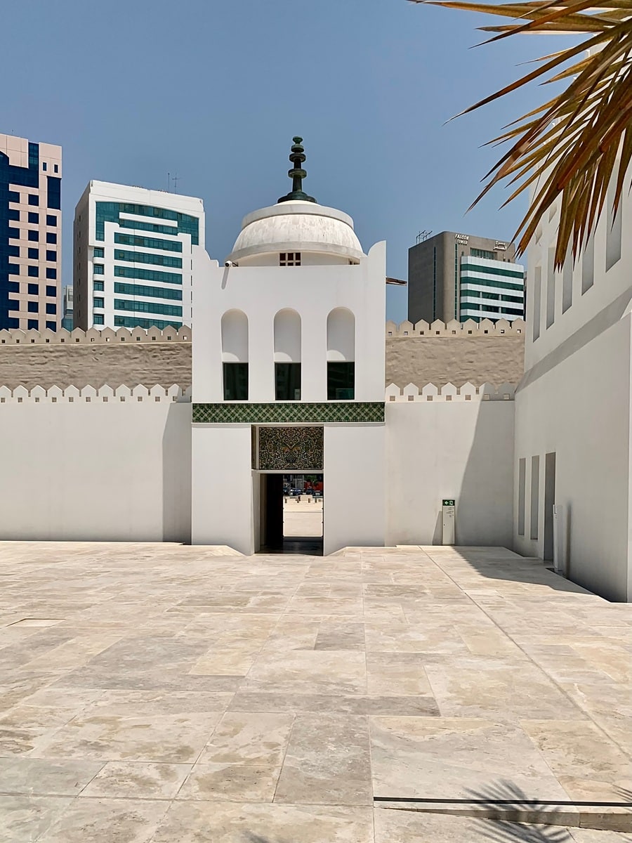 Aujourd’hui, Qasr Al Hosn abrite un musée et des espaces d’exposition. Le visiteur y lit l’évolution d’Abou Dhabi : d’un avant-poste tribal à une capitale urbaine. Les dispositifs modernes (chemins en bois, signalétique discrète, lumière tamisée) accompagnent la visite sans dominer.