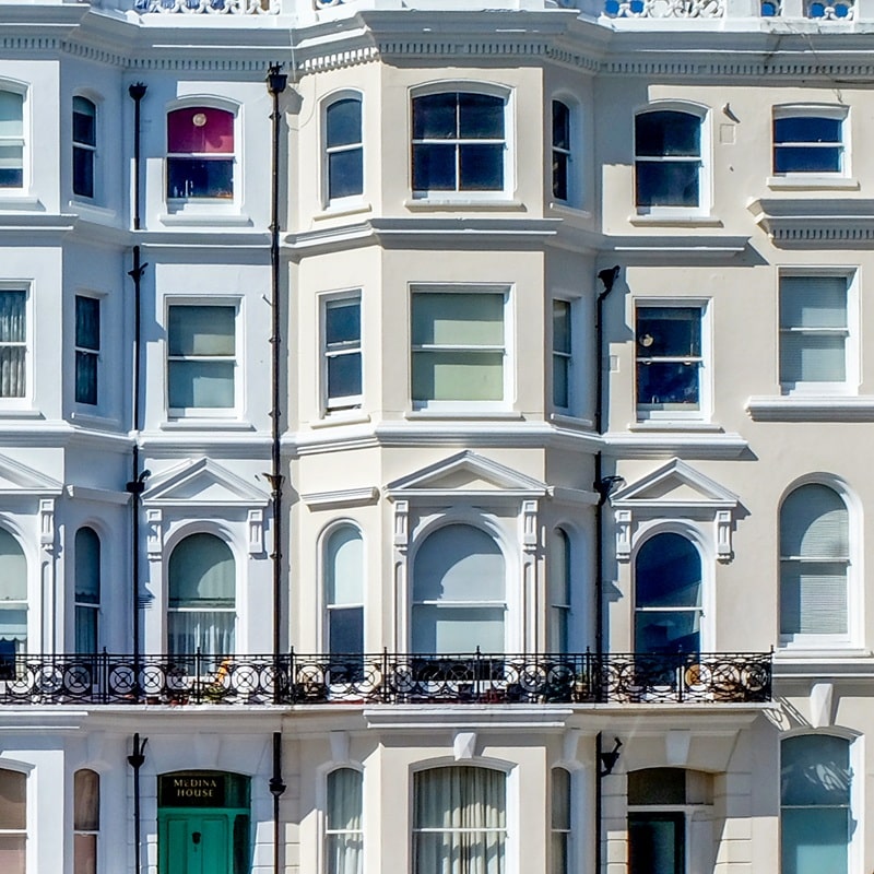 Ce n’est pas un style pensé pour briller seul. Le Regency prend tout son sens quand il se répète, quand plusieurs maisons se répondent et forment une continuité lisible. Ici, la façade n’est pas uniquement celle d’un bâtiment : elle participe à un ensemble, presque à une mise en scène urbaine. Chaque travée compte moins que la ligne qu’elles dessinent ensemble. Et c’est sans doute pour cela que ce style est si facile à reconnaître aujourd’hui. Même vu de loin, un alignement Regency se distingue par cette impression d’ordre sobre, de rythme régulier, comme si la rue avait été dessinée d’un seul geste.