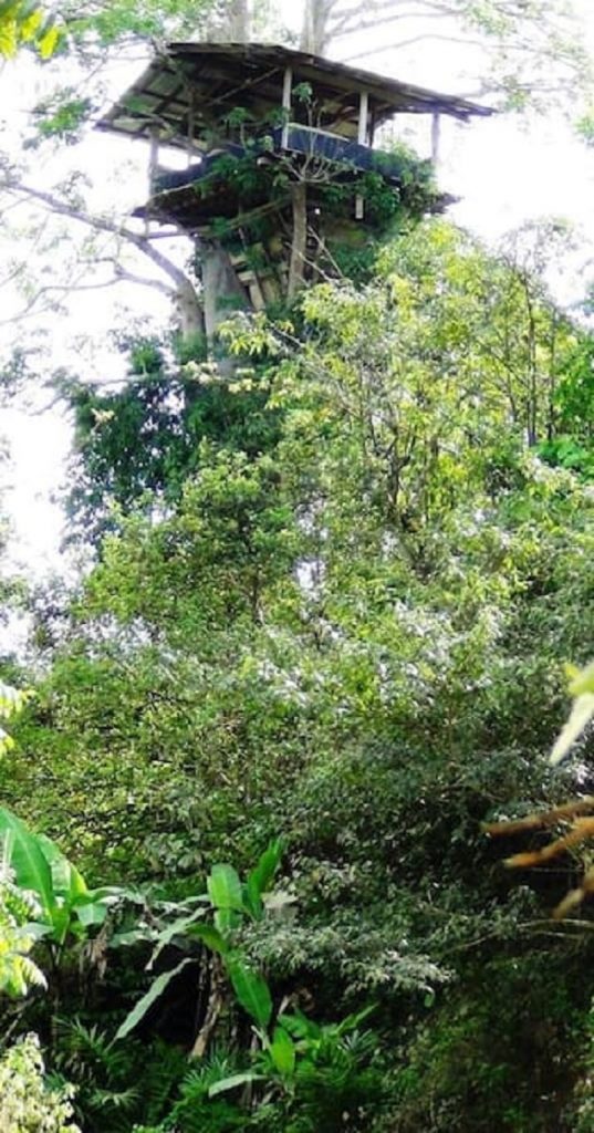 Cette cabane perchée dans un baobab est un site unique au Congo, et même en Afrique ! À une vingtaine de mètres du sol, une cabane a pris place dans l’arbre, le toit traversé par le tronc. La cabane est l’œuvre de Nicaise Bakissi, un charpentier habitant le village les Saras (district de Mvouti). Les travaux de construction ont duré 3 mois. C’est un commandant de bord d’Air France qui est à l’origine du projet.
