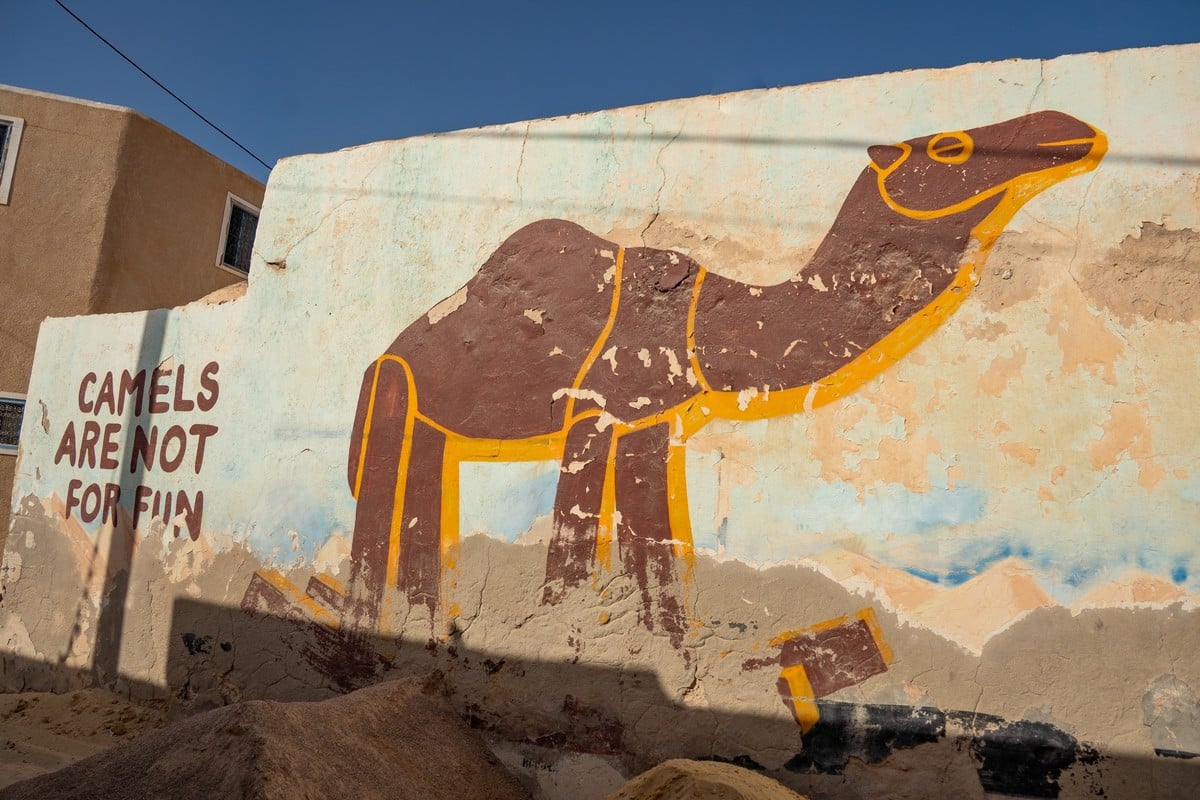 Si les habitants étaient d’abord réticents à l’idée de voir leurs murs repeints par des graffeurs locaux et internationaux, beaucoup d’entre eux se réjouissent aujourd’hui de participer à cette aventure. Le village d’Erriadh attire désormais des visiteurs venus du monde entier, curieux de découvrir les pieuvres, les calligraphies, les visages, les symboles et les motifs colorés peints sur les façades blanches.